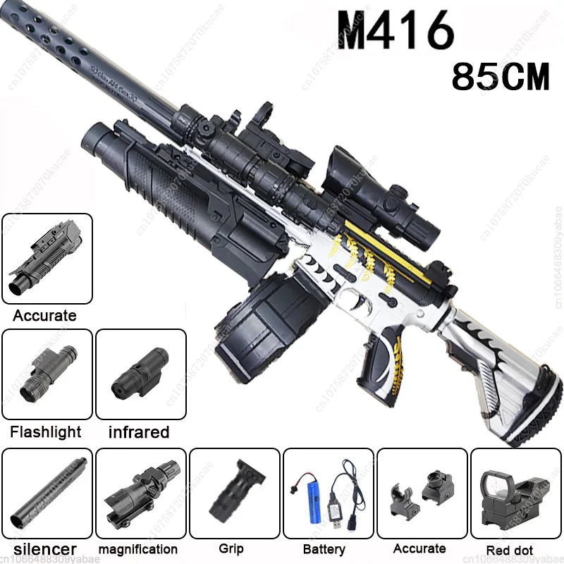 Découvrez notre Fusil M416 à billes gel entiÚrement automatique, le jouet parfait pour des batailles endiablées en extérieur ! Avec son double chargeur et son design ultra-réaliste, ce blaster offre des heures de jeu intense pour toute la famille.